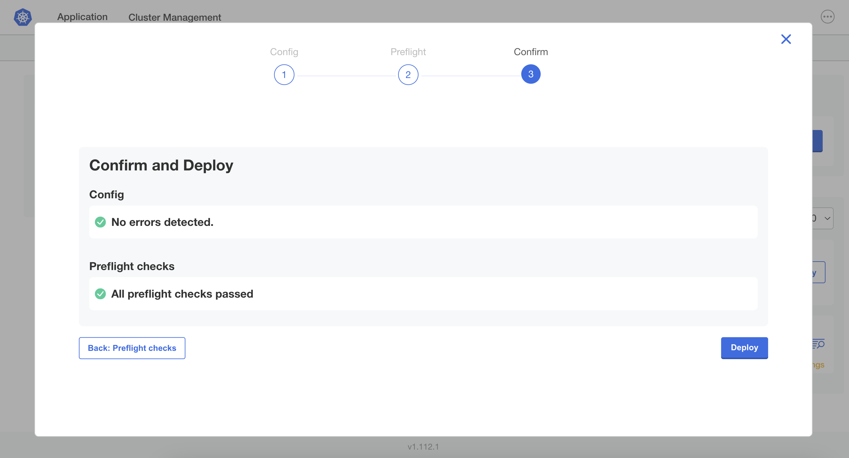 5. When the air gap bundle has been uploaded, click Deploy next to the new version.